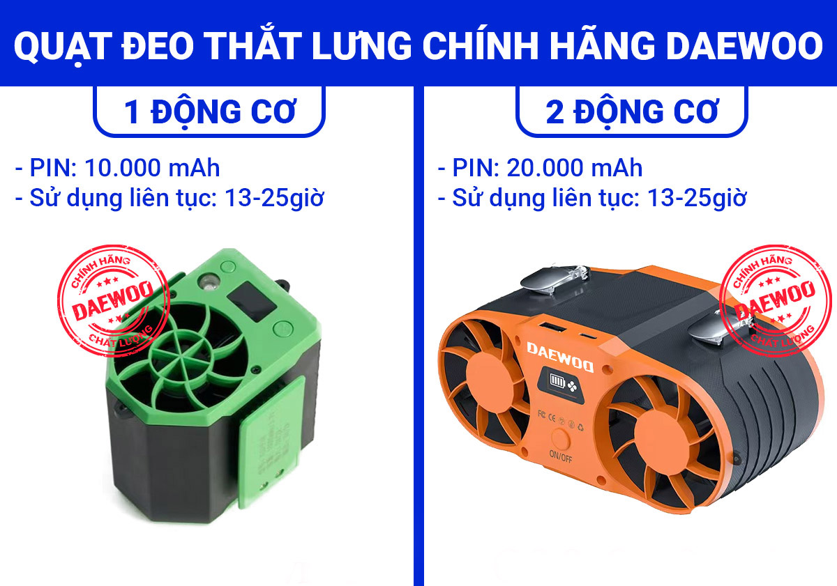 Quạt đeo thắt lưng Daewoo chính hãng Pin 20000mAh 10000mAh sử dụng liên tục 13 đến 25 giờ